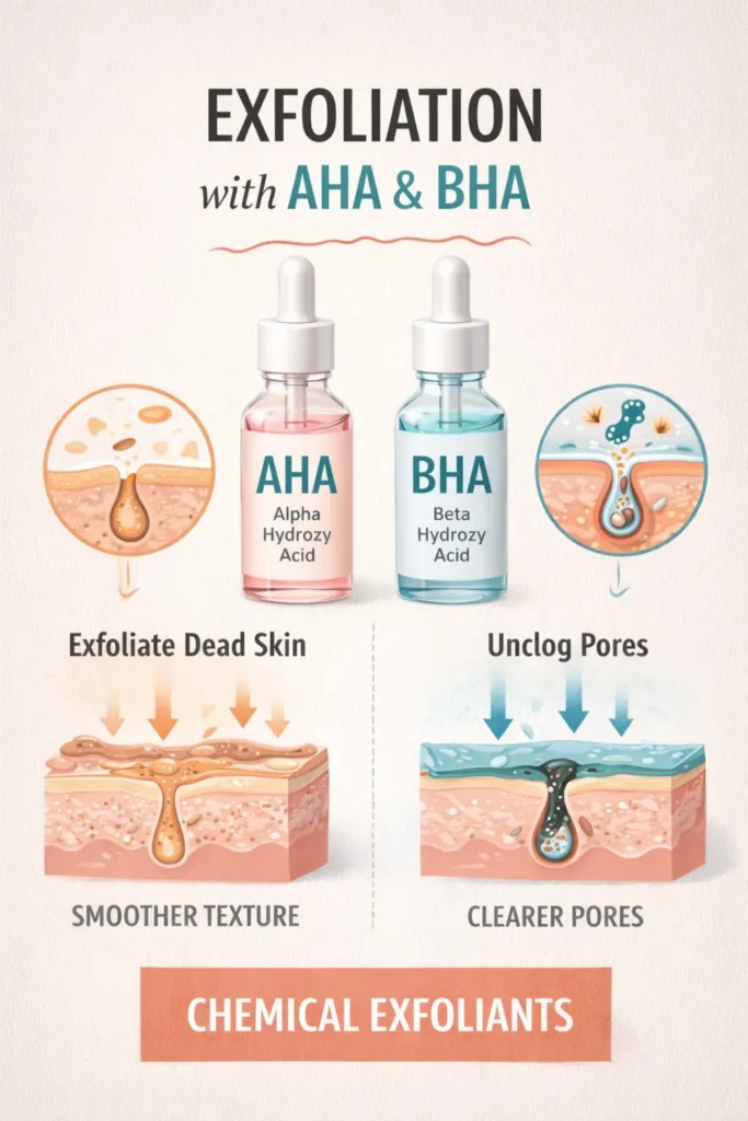 - Choose mild exfoliants (AHA, BHA, or enzyme-based)